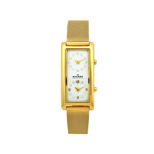 This classic timepiece by Skagen for ladies offers an all gold tone stainless steel case and bracelet. The Mother-Of-Pearl dial features crystal accent markers and a precise quartz movement. Finally, this beautiful timepiece is water-resistant up to 99 feet, ensuring lasting quality for years to come. Read moreRelateItems
